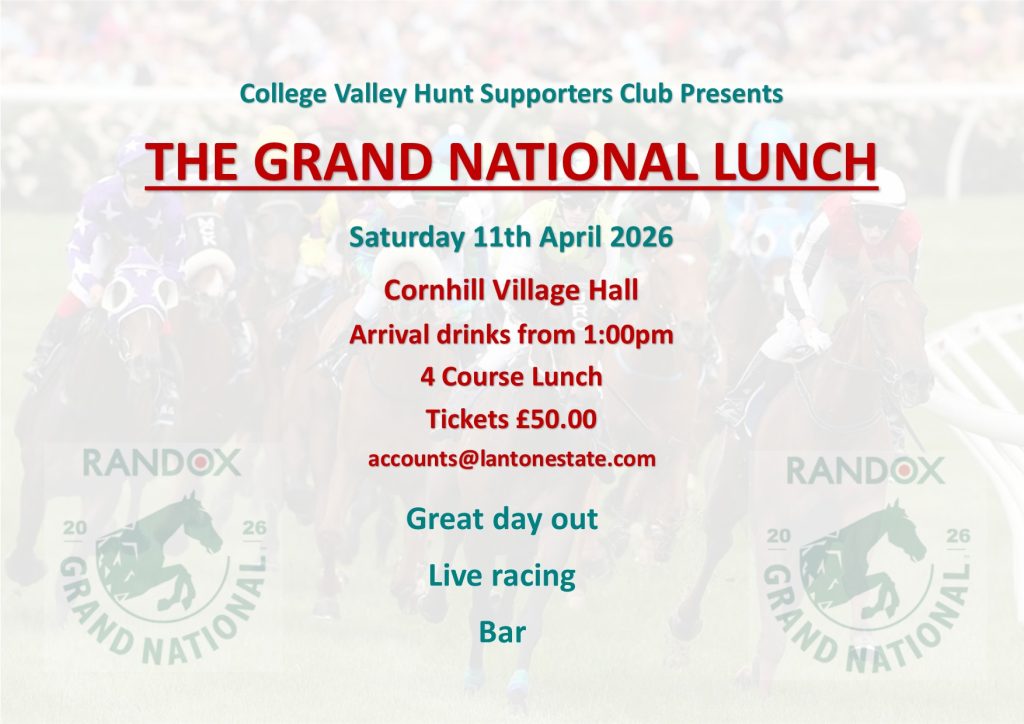 Event Calendar Sorry, the requested event is not available! AllUpcoming202420252026 Sat11Apr2026 CVHSC Grand National Lunch 11th April 2026Cornhill Sat18Apr2026 NNHSC Schooling Day at KimmerstonKimmerston, Milefield, NE71 6JH Schedule and entry form: Click to Download Disclaimer: Click to Download